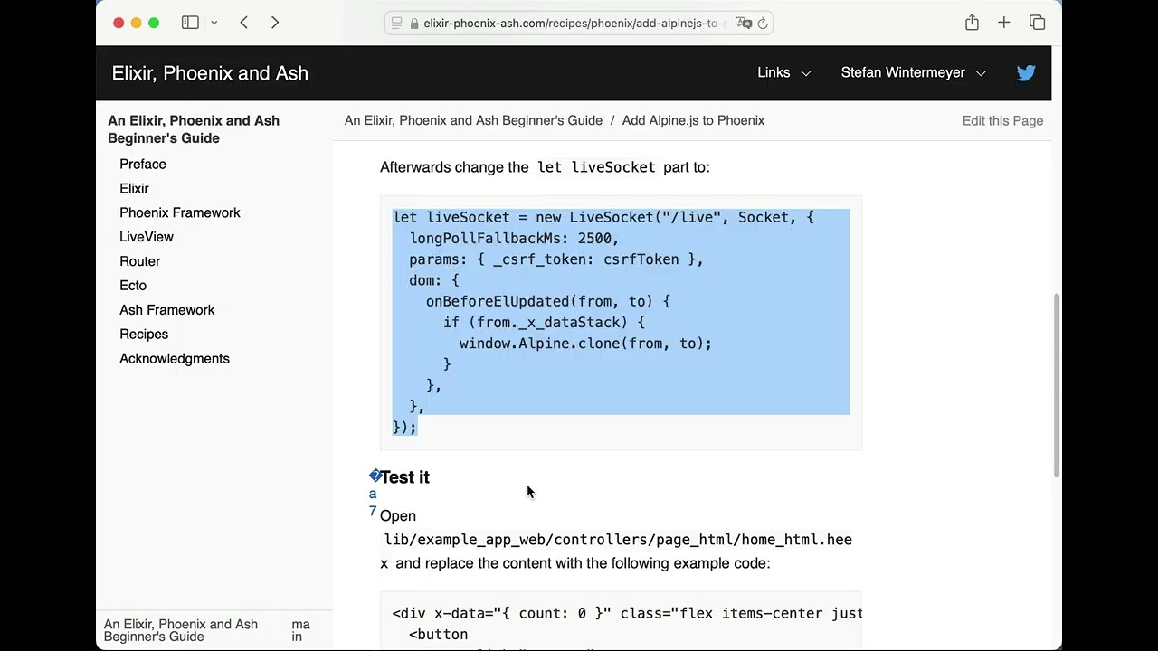 I created quick screencast to show how to add Alpine.js to a Phoenix application: