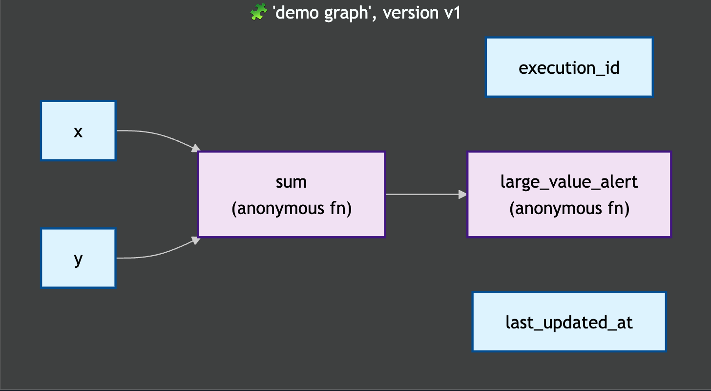 (For my use cases, I needed persistence (and so the value of every node is persisted as soon as it is set or computed), reliability of computations (so the functions in those compute nodes are subject to retry policies), horizontal scalability of computations (those functions will be picked up and called on any of the replicas of my application). I also needed careful mutability and one-time and recurring scheduling (so journey also has mutate(), schedule_once() and schedule_recurring() types of nodes, in addition to input() and compute() that you see in this example), and durability (so that I can always Journey.load() an execution by its id, even after all kinds of outages / redeployments / page reloads, at any time in the future, and it will continue as if nothing happened).)