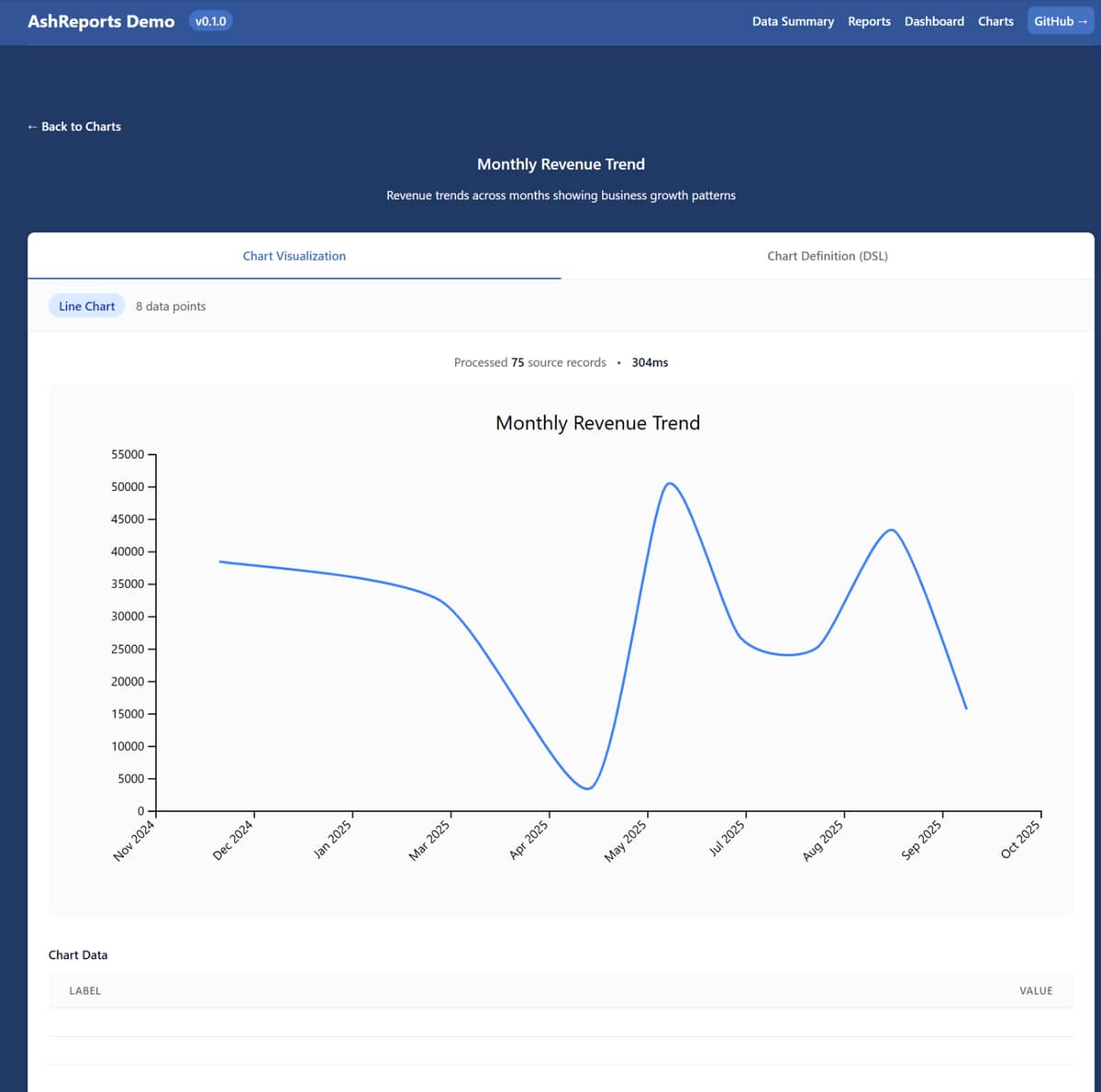 You can also find the code for the demo which requires no database at Ash Reports Demo