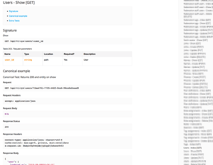 ^ Apidocsjs works very well for my use cases with Elixir. I created a simple phoenix app that gets called by a github webhook whenever a pull request is merged to develop and auto updates the apidoc js output documentation which is hosted on S3. The same app then acts as a reverse proxy to the S3 resources with auth in front of them.