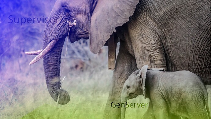 Similarly, The two elephants its mother as Supervisor as it monitors its child GenServer just some kinda humor touchā¦