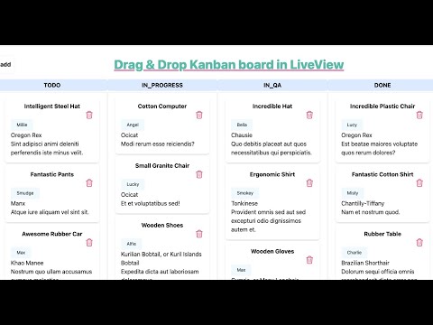 today I added: Build drag n drop kanban board in LiveView and sync changes realtime with all browsers, I used Sortable.js to achieve drag n drop through Hooks and I have discussed about behaviour of socket in LiveView while pushing the changes