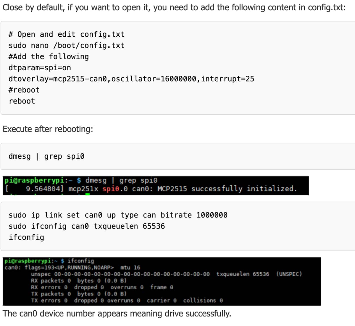 - mcp251x spi0.0 can0: MCP2515 successfully initialized.