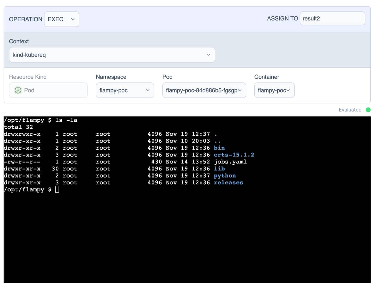 kino_k8s is a Kino/Smart Cell using kubereq to perform operations on your Kubernetes Cluster. It even lets you connect into a running Pod and run a shell - using Xterm.js for rendering the web terminal.
