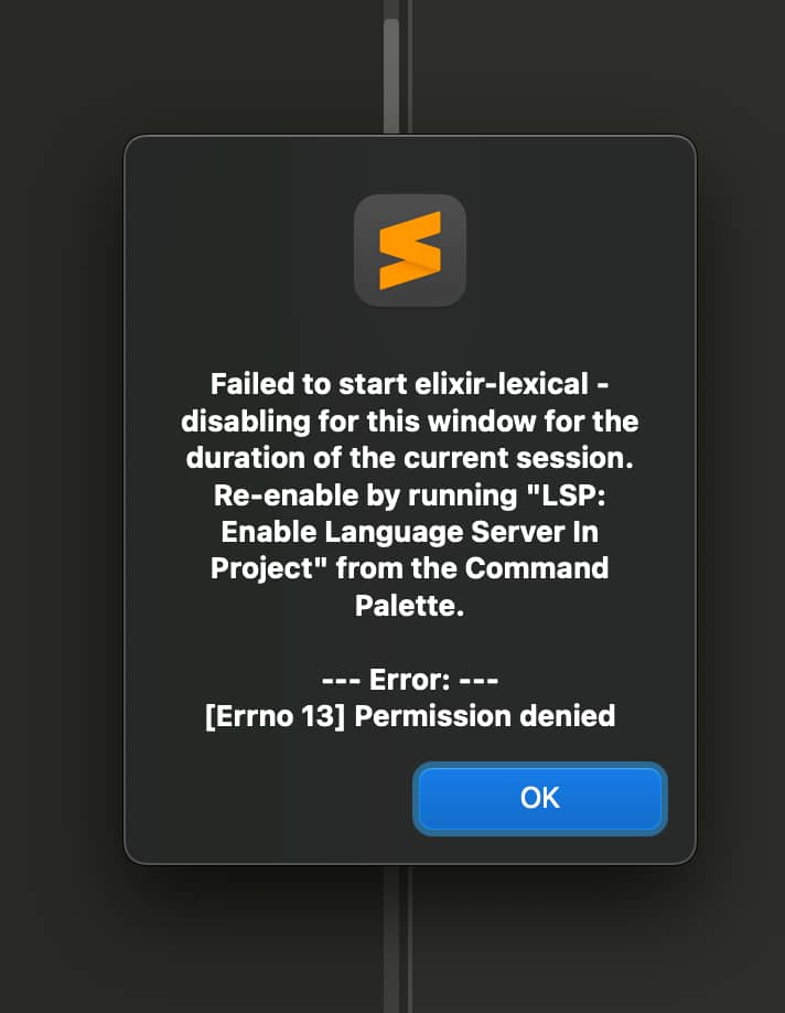I followed that guide but cannot get Lexical to work on Sublime. I get permission denied on a popup when Sublime tries to start Lexical. I can start the script from the command line and the script has executable permissions for everyone:
