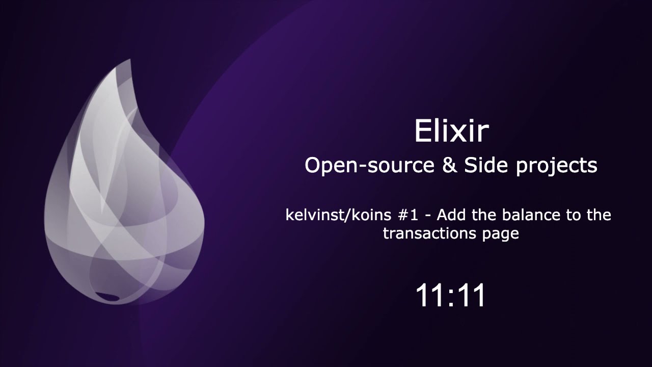 Heeeey! Me again, next livestream is going to be tomorrow, 17:30 UTC. The issue I’m handling is this one: Add the balance to the transactions page · Issue #1 · kelvinst/koins · GitHub. It’s a side project I started some livestreams ago, to toy around a bit with liveview, so if you’re interested on a practical use of liveview on a pretty “standard” application (it’s a personal finance manager), save the time
