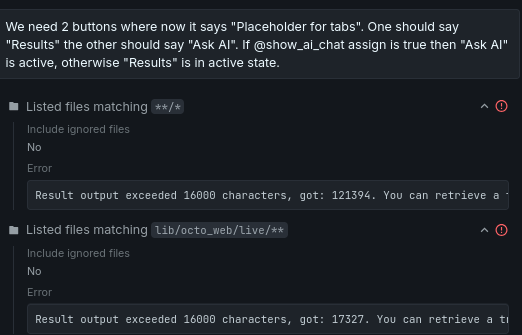 I asked it to add a new resource to an existing context with the mix phx.gen.live task, but as is often the case, this command suggests creating a new context, so the chat got stuck showing the confirmation request. I donât know if thereâs a way from Tidewave to access the console from the chat and confirm the request. I had to do it manually from a console.