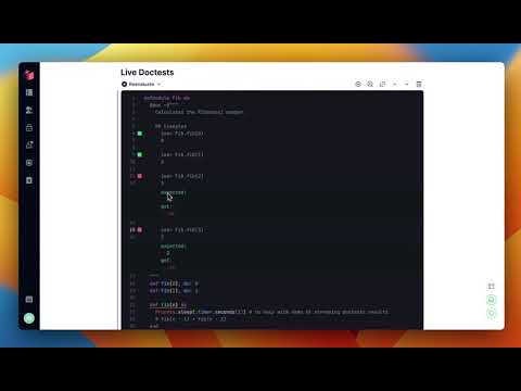 Besides automatically executing them, doctests will be marked green or red in the gutter, and failure information will be shown right below them, inlined.